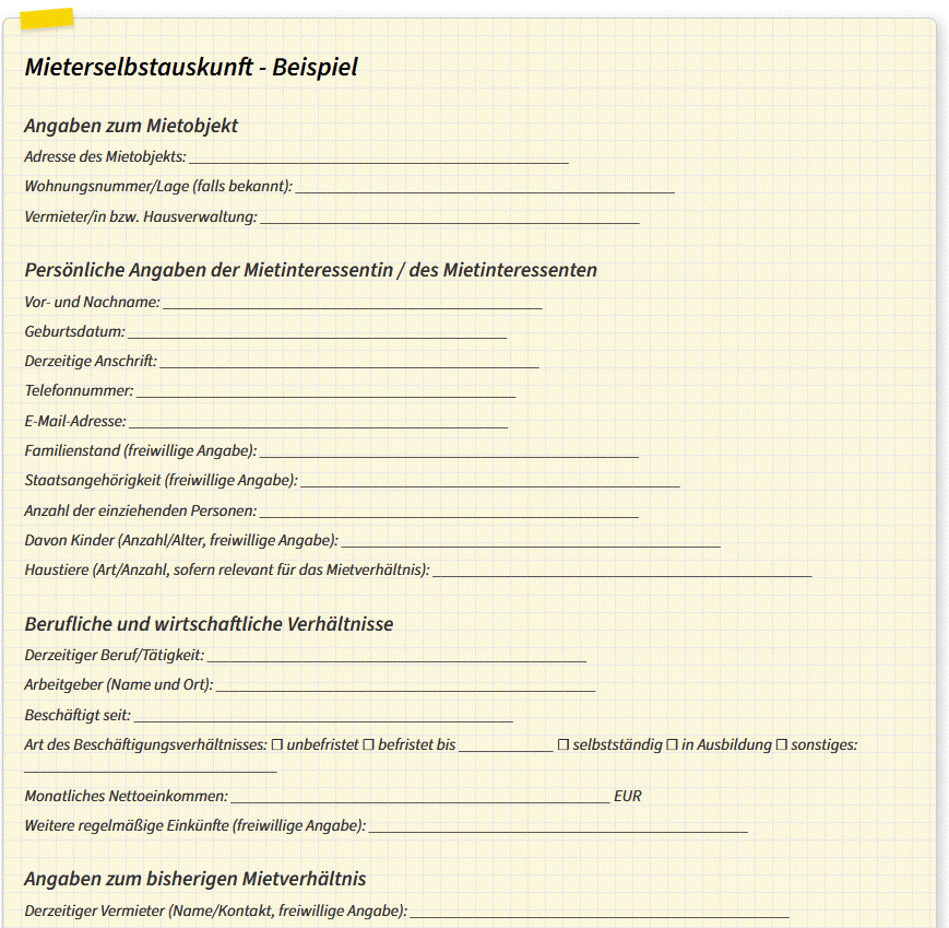 Mieterselbstauskunft - Beispiel